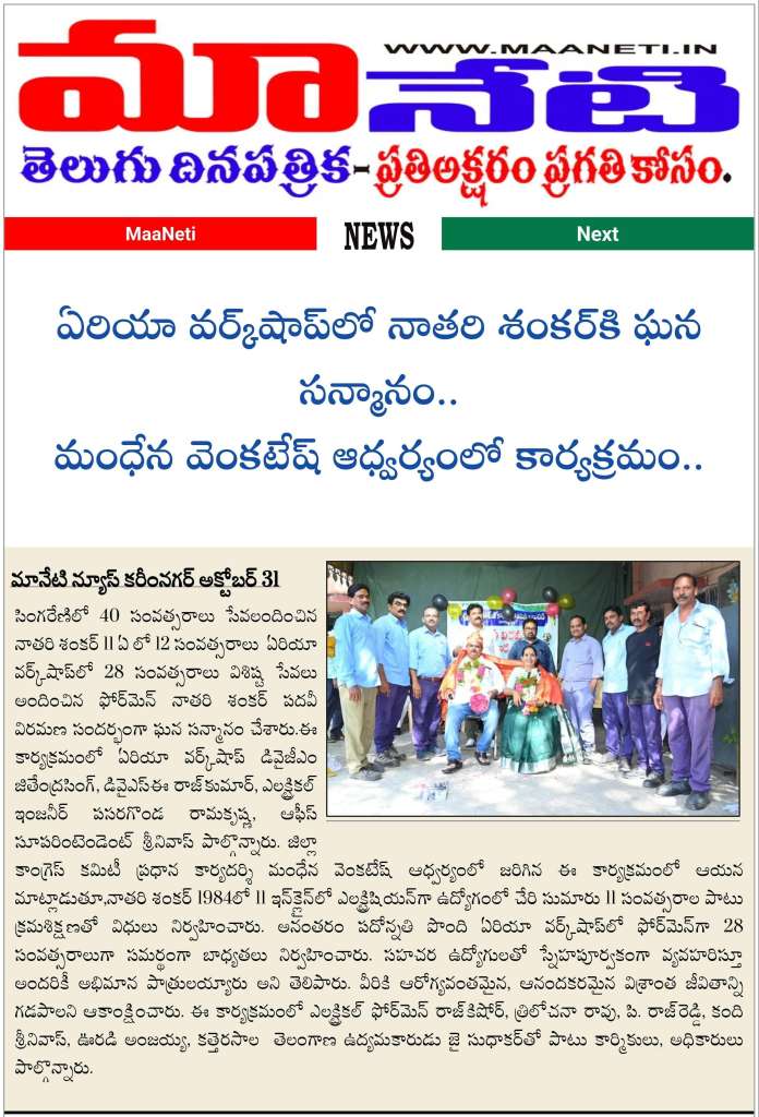 ఏరియా వర్క్‌షాప్‌లో నాతరి శంకర్‌కి ఘన సన్మానం మంధేన వెంకటేష్‌ ఆధ్వర్యంలో కార్యక్రమం..