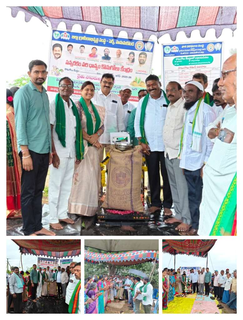హన్మకొండ జిల్లా కమలాపూర్ మండలంలో ఈరోజు శ్రీరాములపల్లి, మాదన్నపేట, శనిగరం, నేరెళ్ల, పంగిడిపల్లి, మర్రిపల్లిగూడెం, గుండేడు గ్రామాలలో ఐకెపి ధాన్యం కొనుగోలు కేంద్రాలను వ్యవసాయ మార్కెట్ చైర్మన్ తౌటం ఝాన్సీ రవీందర్ చేతుల మీదుగా ప్రారంభించారు.ఈ సందర్భంగా చైర్మన్ తౌటం ఝాన్సీ రవీందర్ మాట్లాడుతూ.. “ముందా తుఫాన్ కారణంగా వర్షాల వల్ల తడిసిన ధాన్యం చివరి గింజ వరకు రైతుల వద్ద నుండి కొనుగోలు చేయడం జరుగుతుంది. రైతులు ఎలాంటి ఆందోళన చెందవలసిన అవసరం లేదు. ప్రభుత్వం త్వరితగతిన బోనస్ చెల్లించనుంది. రైతులకు ఎటువంటి అసౌకర్యం కలగకుండా అధికారులు చూడాలి” అని సూచించారు.ఈ కార్యక్రమంలో మార్కెట్ వైస్ చైర్మన్ దేశిని ఐలయ్య గౌడ్, IKP APM లలిత, మాజీ సర్పంచ్ గుండపు చరణ్ పటేల్, డైరెక్టర్లు కెత్తే విజయేందర్, చకిలం దయాకర్, యాకూబ్ పాషా, నెగ్గుల లింగయ్య, కాంగ్రెస్ నాయకులు గూడెపు మొగిలయ్య, దూడ శ్రీకాంత్, నాంపల్లి ప్రభాకర ప్రజాపతి, తాటిపాముల రాములు, అబ్బరవేణి అనిల్, బాలపూరి కనకరత్నం, డాక్టర్ విజయేందర్, డాక్టర్ రాజు, సురేందర్ రాజు, ఉపాసి కృష్ణ, ఐకెపి సిబ్బంది, ఎస్హెచ్జి సభ్యులు, హమాలీలు తదితరులు పాల్గొన్నారు.రైతులు ఈ సందర్భంగా ఐకెపి కొనుగోలు కేంద్రాల ప్రారంభంపై సంతోషం వ్యక్తం చేస్తూ, ప్రభుత్వం తీసుకుంటున్న రైతు అనుకూల నిర్ణయాలను అభినందించారు.
