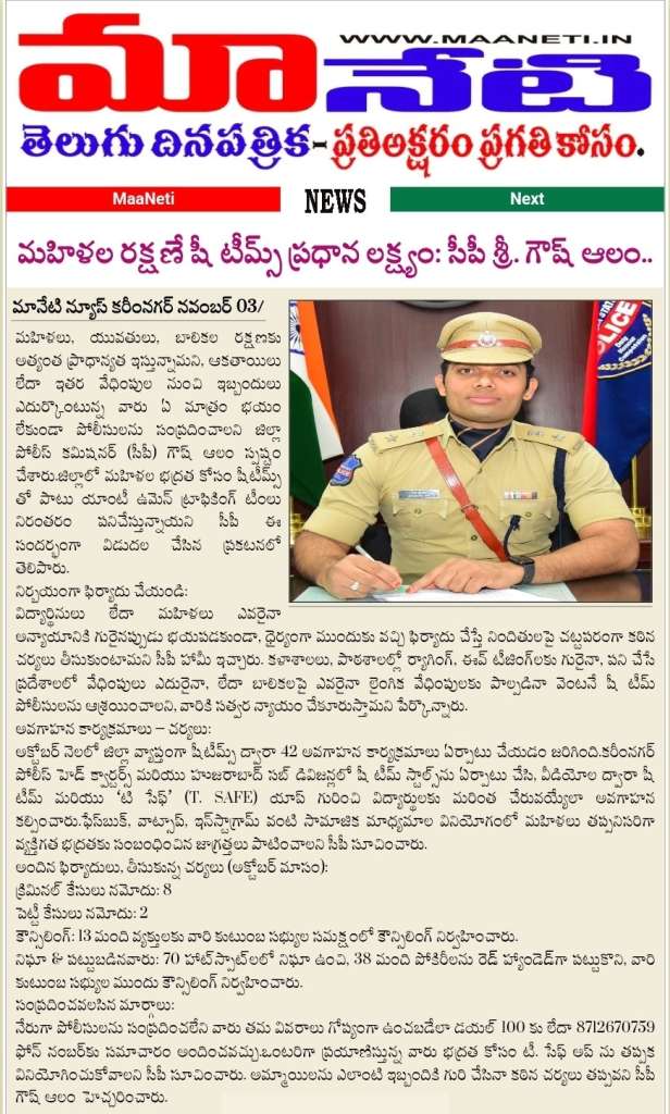 మానేటి న్యూస్ కరీంనగర్ అక్టోబర్ 30