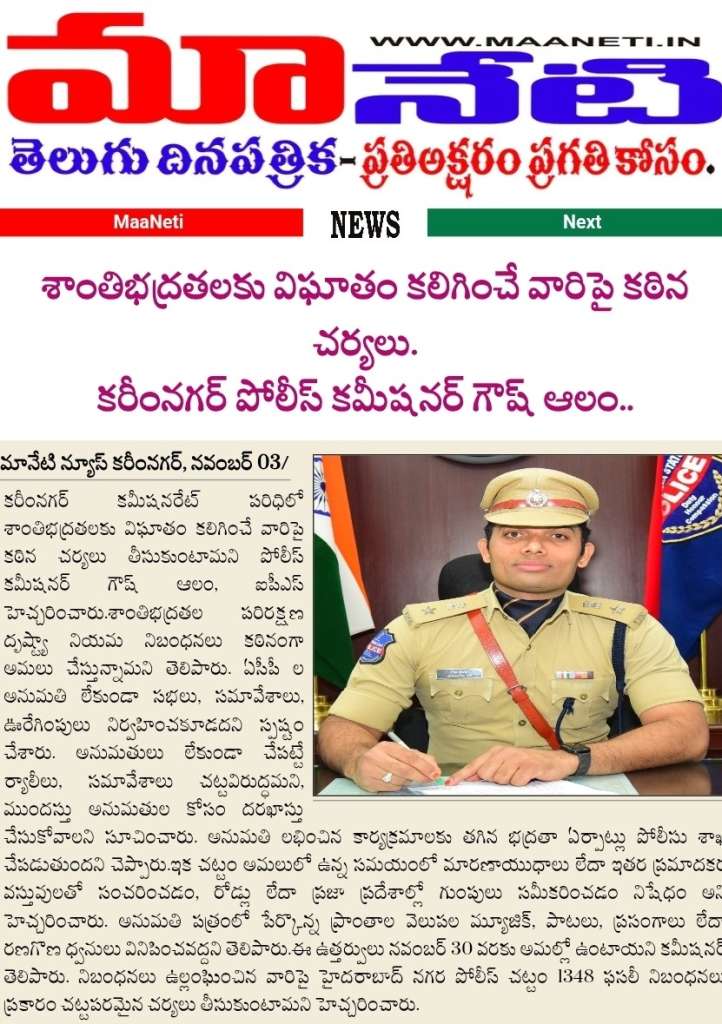 మానేటి న్యూస్ కరీంనగర్ అక్టోబర్ 30